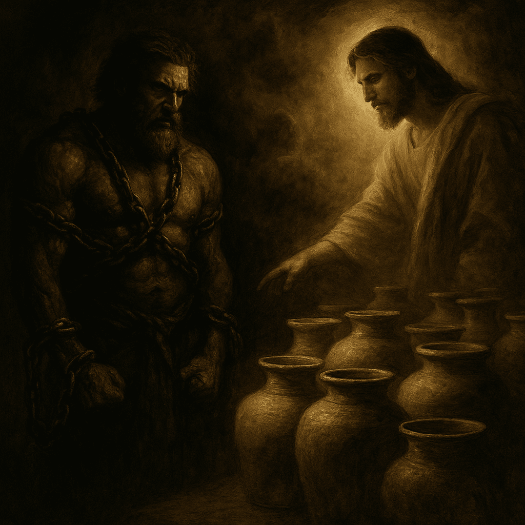 This "house" Jesus talks about in verse 29—it's Satan's kingdom. And the "strong man"? That's Satan himself. What really struck me is that the word for "goods" in Greek also means vessels or instruments. So when I think about it, all of us who were lost—we were like his property, his tools that he used for his own purposes. We were kept in his house, in his kingdom.